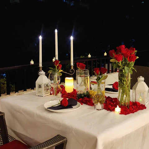 Book a romantic candlelight setup for date night & special occasions. Perfect love decoration with candles, lights & cozy ambiance.